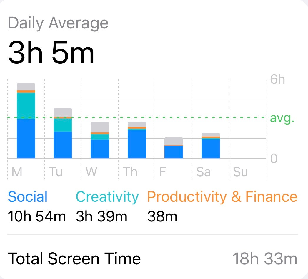 For those who are new, I’m walking the talk and actively working to reduce my screen time, and you’re my accountability buddy! Here’s what my screen time looked like this week: